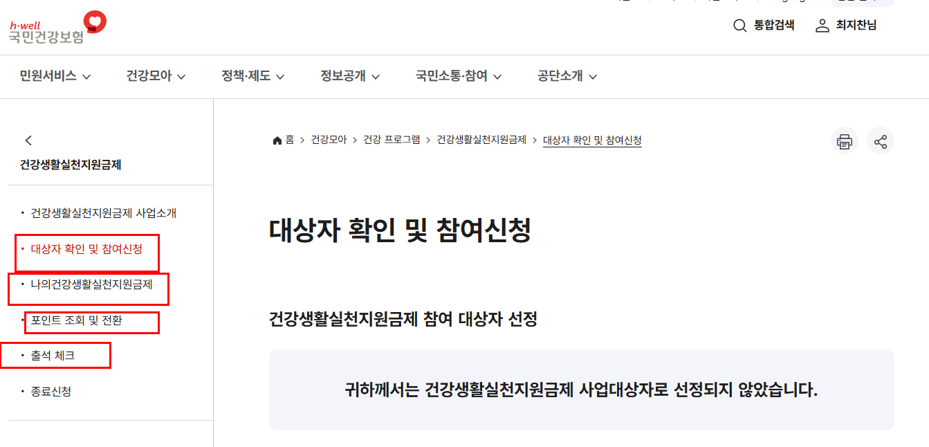 - 건강생활실천지원금 대상 조회